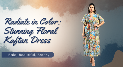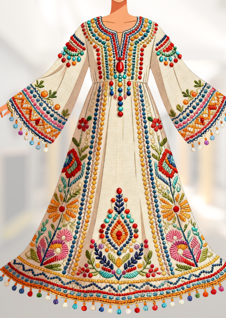 Embroidered Floral Handloom Kimono Dress: Flared Sleeve Kaftan